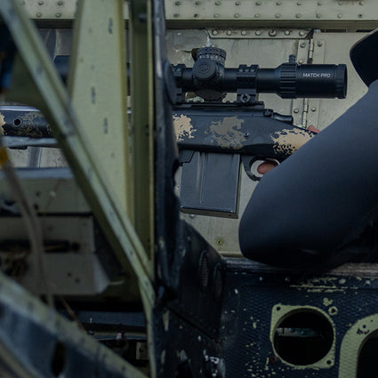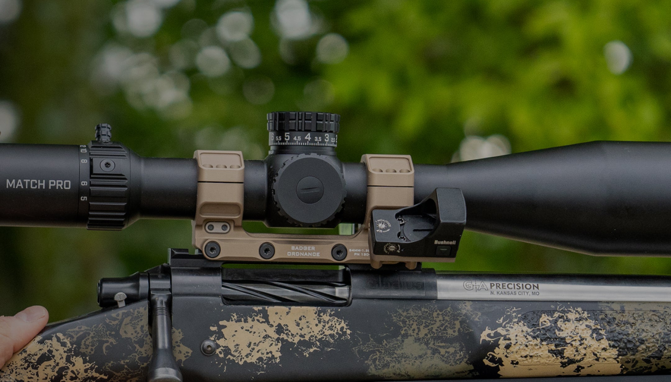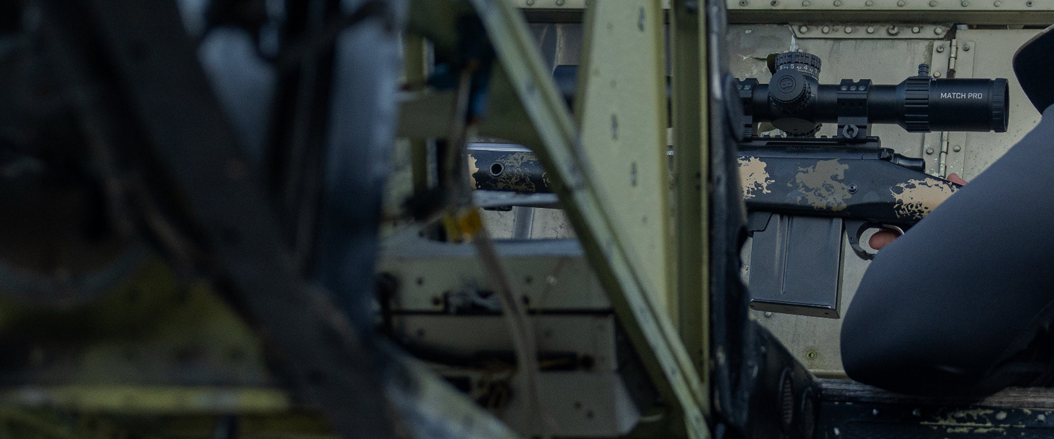Start with a match-ready riflescope, then add binoculars for glassing stages, spotting impacts, and staying on target without breaking position
